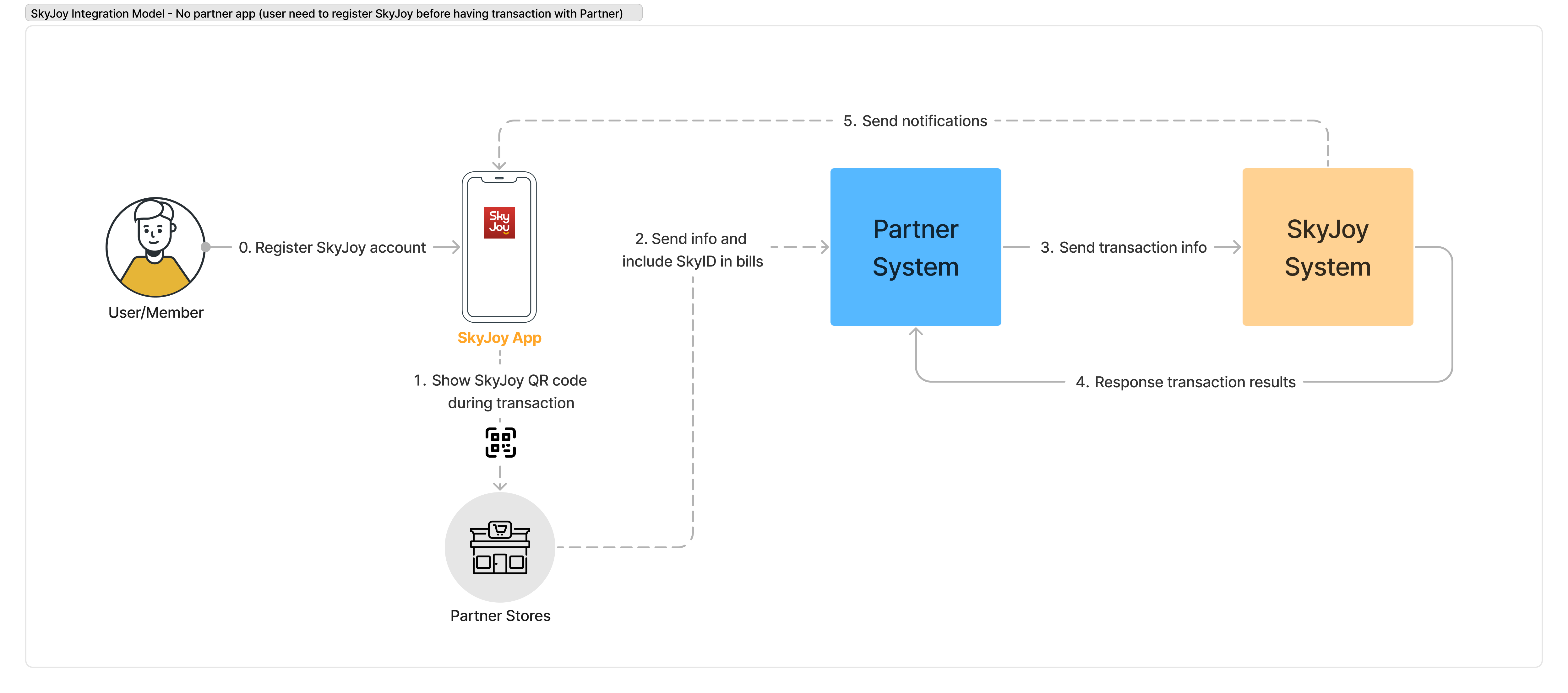 This section describes the Main Scenario that must be linked with the SkyJoy System in the process of membership registration and use without partner apps.